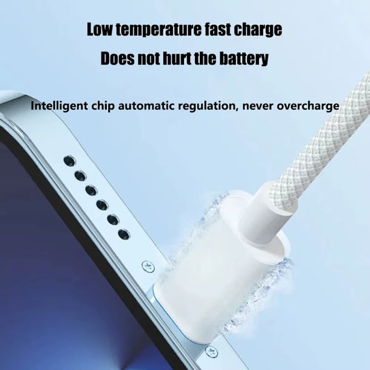 66W USB-C naar USB-C Snellaadkabel (3M) – Nylon Gevlochten